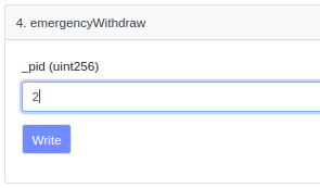 You need to specify the pid number of your pool and then execute the transaction by clicking “Write” and your funds will be safely withdrawn.